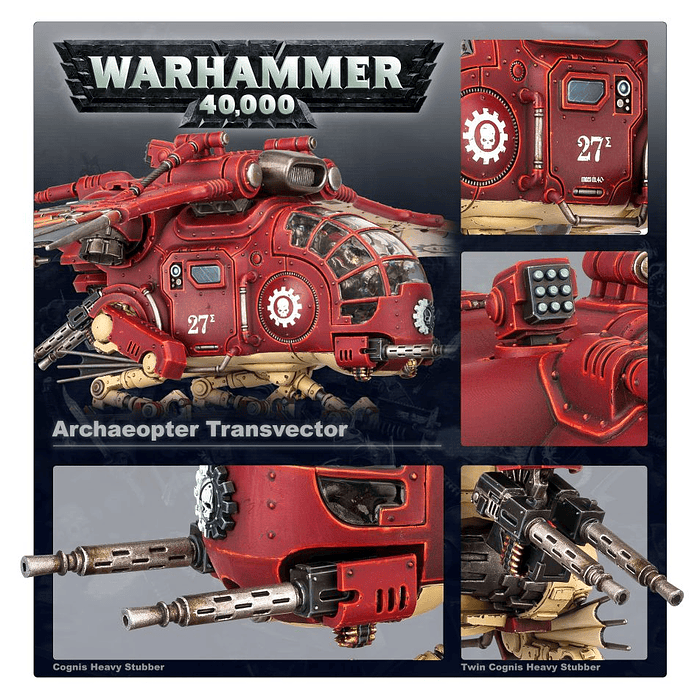 Caballo de batalla no solo de los tóxicos cielos marcianos, sino también de los mundos distantes que lideraron la expansión de los Tecnosacerdotes durante milenios, el Archaeopter es una ágil aeronave de ala fija. Pilotado por un miembro de la casta Pteraxii, cuyas patas y escápula superior están integradas en sus controles, el tejido de nanofibra de carbono de sus alas es capaz de transformarse, una propiedad que comparte con los paquetes de vuelo de los Pteraxii. Esto le proporciona una gran maniobrabilidad y le permite operar bajo presión cambiante mientras se lanza en picado para lanzar bombas tectomágnicas que penetran el suelo, diseñadas para causar ondas de choque sísmicas entre las filas enemigas.