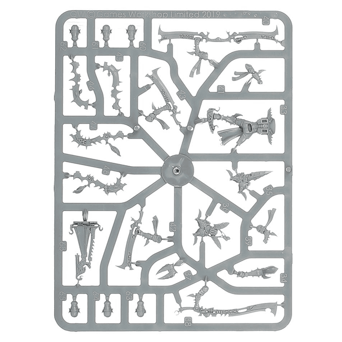Los Drukhari son una raza decadente de atormentadores y asaltantes alienígenas. Los Drukhari, que una vez formaron parte de un imperio que se extendía por toda la galaxia, ahora se entregan a todas las pasiones macabras que su inteligencia suprema puede concebir. Se consideran superiores a las demás razas de la galaxia y están aquejados de una enfermedad del alma que solo el sufrimiento de los demás puede colmar. Las filas de los Drukhari están repletas de guerreros ágiles y veloces, cada uno de ellos armado con un armamento diseñado para infligir el máximo dolor y, gracias a su aplomo innato, elevan su tortuosa forma de guerra a una horripilante forma de arte.