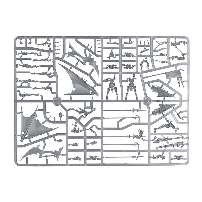 Estos kits se suministran con las peanas Citadel adecuadas para sus miniaturas, y también se incluye una hoja de calcomanías Drukhari.